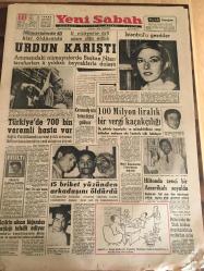 YENİ SABAH GAZETESİ 22 NİSAN 1963 YIL :25 SAYI :8661--Nümayişlerde 40 kişi öldürüldü --Ürdün Karıştı --Türkiye de 700 bin veremli hasta var --100 Milyonluk liralık bir vergi kaçakçılığı --15 briket yüzünden arkadaşını öldürdü --Hilton da zenci bir Amerika lı soyuldu --Avrupa dan geldi :Siyavuşgil --Islahatçı AP 'liler Genel Merkezi Yine İtham Ettiler --Sinemalar :Atlas : Siyah ipekli Casus ,İnci :İki Kocalı Kadın, Konak : Sahte Sevgili ,Lale :Asi Ruhlar ,Şan :Badem Şekeri ,Ünal :Parisin Esrarı ----Fenerbahçe 'nin ilk galibiyeti İzm .Spor dan aldı :1-0--Beşiktaş K. Yaka 'yı 2-0 Yendi --Serbestte İran 'a 4-2 mağlup olduk ---Fenerbahçe galibi D. Spor ,K.Paşa 'ya yenildi : 2-1--Altay :1 Beykoz :0--G.Birliği ,H. Tepe ile puanları paylaştı :1-1--- adlı eser, Kitap > Süreli Yayınlar > Gazeteler > Türkiye > Genel > Günlük kategorisinde İkinci El olarak satıştadır.
