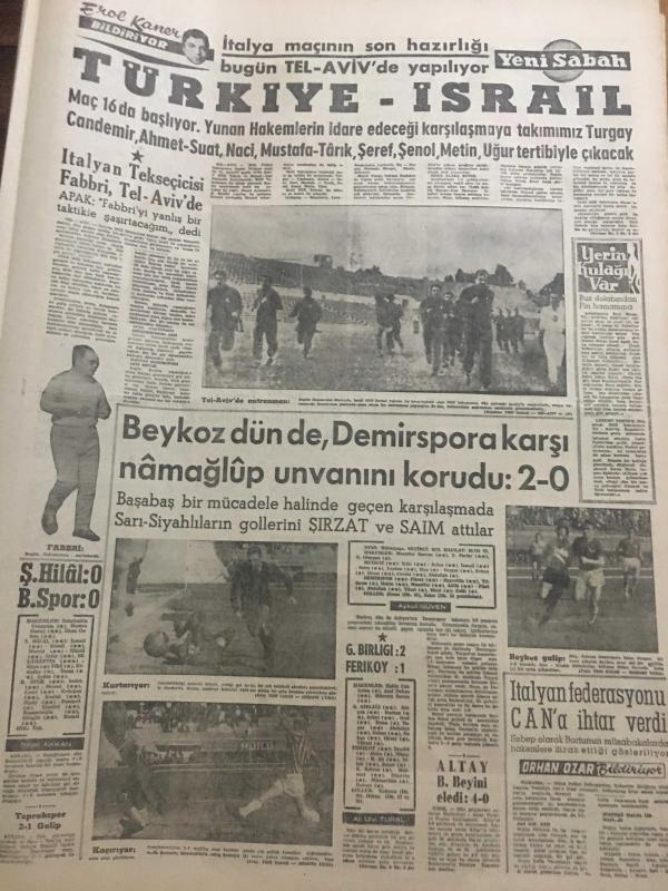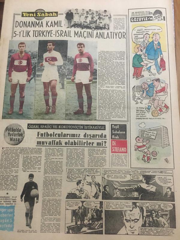 YENİ SABAH GAZETESİ 25 KASIM 1962 YIL :25 SAYI :8515---Sahil muhafaza botumuza saldıran Yunan balıkçılarından üçü boğuldu --Baba ile oğul komünizmden mahkum oldu --Türk -Kıbrıs Görüşmeleri anlaşma ile sona erdi --Komünist talebe mahkemede bütün kabahat babamda dedi ---İtalya da yasak ilaç şehrimizde satılıyor --Düşünen Adam :Siyavuşgil --Şoförü soyup taksiyi de kaçıran üç kişi yakalandı ---Pakistan CENTO dan çekilme tehdidini tekrarladı --Türkiye -İsrail --Beykoz dün de Demir spora karşı namağlup unvanını korudu :2-0---Haftanın filminde Anthony Quinn'i bir Eskimo genci rolünde göreceksiniz --Grace Kelly yine film çeviriyor --Tansu Gürsu --Perihan Tedü ,ilk tiyatro imtihanını bir masa da verdi --Gülgün Ok --Donanma Kamil 5-1 'lik Türkiye-İsrail Maçını Anlatıyor --, SAFA KILIÇLIOĞLU tarafından kaleme alınmıştır. Kitap 1962 yılında [YENİ SABAH MATBAA] o ISBN kodu ile yayınlanmıştır. 8 sayfadır. YENİ SABAH GAZETESİ 25 KASIM 1962 YIL :25 SAYI :8515---Sahil muhafaza botumuza saldıran Yunan balıkçılarından üçü boğuldu --Baba ile oğul komünizmden mahkum oldu --Türk -Kıbrıs Görüşmeleri anlaşma ile sona erdi --Komünist talebe mahkemede bütün kabahat babamda dedi ---İtalya da yasak ilaç şehrimizde satılıyor --Düşünen Adam :Siyavuşgil --Şoförü soyup taksiyi de kaçıran üç kişi yakalandı ---Pakistan CENTO dan çekilme tehdidini tekrarladı --Türkiye -İsrail --Beykoz dün de Demir spora karşı namağlup unvanını korudu :2-0---Haftanın filminde Anthony Quinn'i bir Eskimo genci rolünde göreceksiniz --Grace Kelly yine film çeviriyor --Tansu Gürsu --Perihan Tedü ,ilk tiyatro imtihanını bir masa da verdi --Gülgün Ok --Donanma Kamil 5-1 'lik Türkiye-İsrail Maçını Anlatıyor -- adlı eser Türkçe dilindedir.