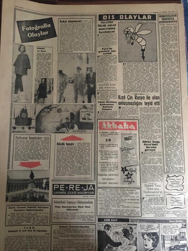YENİ SABAH GAZETESİ 25 TEMMUZ 1962 YIL :25 SAYI :8392--Ahmet Yıldız Temelli Kalacak --Talat Aydemir ,siyasi suallerle cevap vermedi ---38 General ve Albay tayin ve nakledildi --Muhlis Ete: Piyasa yeniden canlanıyor --Ortak Pazar Gümrük Birliğine Dahil Edildik --İntihar edeceğim diyen kız kayboldu --Belediyenin raporu :Kabzımallık kaldırıp kooperatif kurulmalı --Kızılay maden suları bozuldu ---İnönü nün kabahati : Siyavuşgil --Belediye de rüşvet verilmesini önlenecek --Dış Olaylar : Sovyetler Büyük Askeri Manevralara Hazırlanıyor --Kızıl Çin Rusya ile olan anlaşmazlığını teyid etti --Attığı yumruk adamı öldürdü --Alp Reel durumu ümitsiz görülüyor --Beş yıldır kocasını arıyor ---Metin ,bugün tekrar Galatasaraylı oluyor --Beşiktaş Şampiyonluk Ümidiyle Dün Sezona Girdi --Ankara -Belgrad ,İstanbul - Telavıv --Milli Takıma yerli bir antrenör aranıyor --Can Bartu bugün gidiyor -- adlı eser, Kitap > Süreli Yayınlar > Gazeteler > Türkiye > Genel > Günlük kategorisinde İkinci El olarak satıştadır.