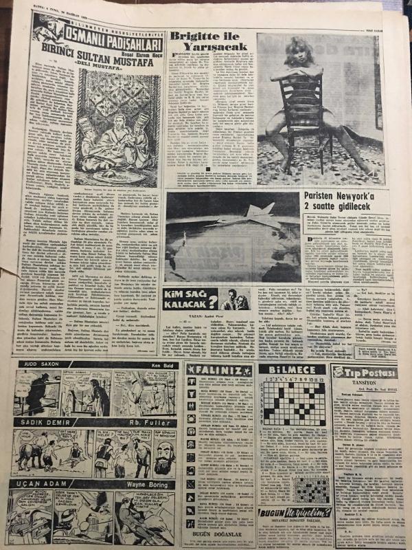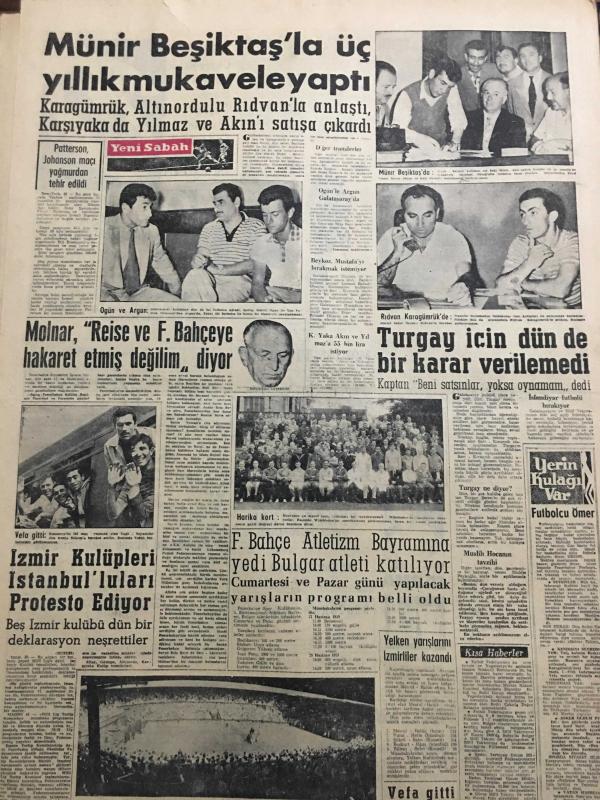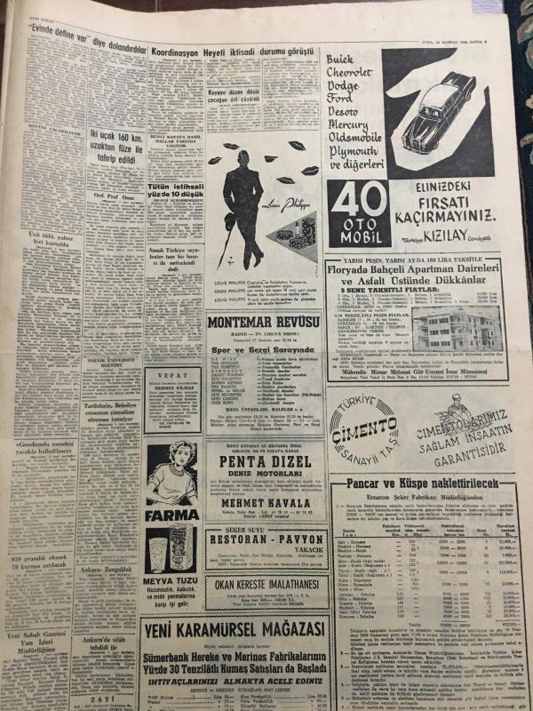 YENİ SABAH GAZETESİ 26 HAZİRAN 1959 YIL :22 SAYI :7294--Koordinasyon Heyeti iktisadi durumu görüştü --Ord.Prof.Onar ,İstanbul Üniversitesi Rektörü oldu ---950 Gramlık ekmek 70 kuruşa satılacak ---Üçü öldü yalnız biri kurtuldu --Evinde define var diye dolandırıldılar --Gecekondu meselesi yasakla halledilmez ---Rhein nehrinde :Siyavuşgil --Esrar satan bir aile birlikte mahkum oldu ---İstanbul Rehberi ---İş bulma kurumundan iş isteyenler çoğaldı --3. İstimlak yolsuzluğa davasında maznunlar hakimler dava ettiler ---Münir Beşiktaş la üç yıllık mukavele yaptı --Molnar ,Reise ve Fenerbahçe ye hakaret etmiş değilim diyor ---Turgay için dün de bir karar verilemedi --İzmir Kulüpleri İstanbulluları protesto ediyor ---Fenerbahçe Atletizm Bayramına Yedi Bulgar Atleti Katılıyor ---Spaak ,Türkiye seyahatim tam bir başarı ile neticelendi --2. Kota da 28 bin ton ithal malı geliyor ---Üç bir olup da bir çobanı öldürdüler --, SAFA KILIÇLIOĞLU tarafından kaleme alınmıştır. Kitap 1959 yılında [YENİ SABAH MATBAA] o ISBN kodu ile yayınlanmıştır. 6 sayfadır. YENİ SABAH GAZETESİ 26 HAZİRAN 1959 YIL :22 SAYI :7294--Koordinasyon Heyeti iktisadi durumu görüştü --Ord.Prof.Onar ,İstanbul Üniversitesi Rektörü oldu ---950 Gramlık ekmek 70 kuruşa satılacak ---Üçü öldü yalnız biri kurtuldu --Evinde define var diye dolandırıldılar --Gecekondu meselesi yasakla halledilmez ---Rhein nehrinde :Siyavuşgil --Esrar satan bir aile birlikte mahkum oldu ---İstanbul Rehberi ---İş bulma kurumundan iş isteyenler çoğaldı --3. İstimlak yolsuzluğa davasında maznunlar hakimler dava ettiler ---Münir Beşiktaş la üç yıllık mukavele yaptı --Molnar ,Reise ve Fenerbahçe ye hakaret etmiş değilim diyor ---Turgay için dün de bir karar verilemedi --İzmir Kulüpleri İstanbulluları protesto ediyor ---Fenerbahçe Atletizm Bayramına Yedi Bulgar Atleti Katılıyor ---Spaak ,Türkiye seyahatim tam bir başarı ile neticelendi --2. Kota da 28 bin ton ithal malı geliyor ---Üç bir olup da bir çobanı öldürdüler -- adlı eser Türkçe dilindedir.