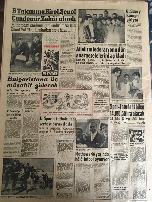 YENİ SABAH GAZETESİ 3 KASIM 1960 YIL :23 SAYI :7779---Örtülü ödenekle ilgili kararname hazırlandı --Zonguldak ve Siirt e iki emekli subay vali oldu --259 Kabzımal 6 Kasım a kadar Hal i terk edecek --Üniversiteler de Dekan Seçimleri Dün Yapıldı ---6-7 Eylül ve bebek davalarına devam ediliyor --Atatürk Haftası Tertiplendi --Cüneyt Özdemir aftan istifade etmeyi reddetti --Sivas Öğretmen Okulunda Talebe Nümayişi Oldu --Aşığıyla beraber kocasını öldürdü ---Ferit Yok ,Millet Var !:Siyavuşgil --Bayar Ahmak Napolyon ,İşlerin Sonunu İyi Getirmemiş Diyordu --İstanbul Rehberi ---Doğu Pakistan da tayfundan 40 kişi öldü ,7 gemi battı --Kabine dün petrol durumunu görüştü ---Gençlik teşekkülleri kısa zamanda birleştirilecek ---B.Takımına Birol ,Şenol Candemir ,Zekai alındı ---Bulgaristan a üç müşahit gidecek --Atletizm federasyonu dün ana meselelerini açıkladı --Galatasaray kampa giriyor --D.Sporlu futbolcular serbest bırakıldılar --Mathews 46 yaşında hala futbol oynuyor ---, SAFA KILIÇLIOĞLU tarafından kaleme alınmıştır. Kitap 1960 yılında [YENİ SABAH MATBAA] o ISBN kodu ile yayınlanmıştır. 6 sayfadır. YENİ SABAH GAZETESİ 3 KASIM 1960 YIL :23 SAYI :7779---Örtülü ödenekle ilgili kararname hazırlandı --Zonguldak ve Siirt e iki emekli subay vali oldu --259 Kabzımal 6 Kasım a kadar Hal i terk edecek --Üniversiteler de Dekan Seçimleri Dün Yapıldı ---6-7 Eylül ve bebek davalarına devam ediliyor --Atatürk Haftası Tertiplendi --Cüneyt Özdemir aftan istifade etmeyi reddetti --Sivas Öğretmen Okulunda Talebe Nümayişi Oldu --Aşığıyla beraber kocasını öldürdü ---Ferit Yok ,Millet Var !:Siyavuşgil --Bayar Ahmak Napolyon ,İşlerin Sonunu İyi Getirmemiş Diyordu --İstanbul Rehberi ---Doğu Pakistan da tayfundan 40 kişi öldü ,7 gemi battı --Kabine dün petrol durumunu görüştü ---Gençlik teşekkülleri kısa zamanda birleştirilecek ---B.Takımına Birol ,Şenol Candemir ,Zekai alındı ---Bulgaristan a üç müşahit gidecek --Atletizm federasyonu dün ana meselelerini açıkladı --Galatasaray kampa giriyor --D.Sporlu futbolcular serbest bırakıldılar --Mathews 46 yaşında hala futbol oynuyor --- adlı eser Türkçe dilindedir.