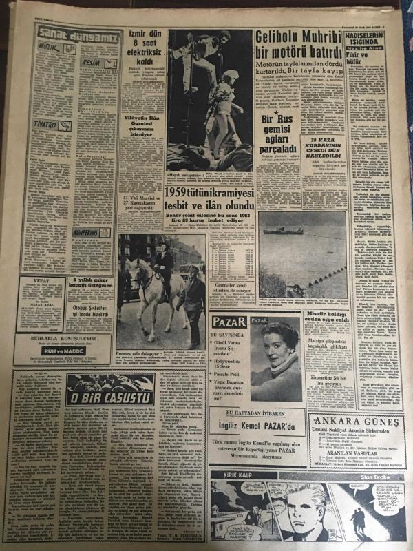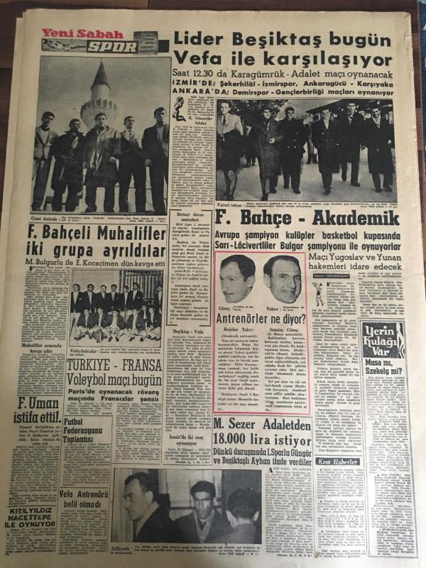 YENİ SABAH GAZETESİ 30 OCAK 1960 YIL :22 SAYI :7512---Safa Kılıçlıoğlu na tecavüz hadiseleri meclise getirildi --Yeni Sabah Gazetesi Yazı İşleri Müdürlüğüne ---Afyon un bir köyünde 13 kişi toprak altında kaldı ---Çekilen teessür telgrafları ve ziyaretler--De Gaulle asilleri ezmek kararında --Konya mebusu Nurcuları müdafaa etti ---Moda cinayeti hakkında morg raporu verildi ---80 lik ihtiyarı 335 lira için öldürdüler --Fazıl Küçük şehrimizde --Karmanyolacıya Nasihat :Siyavuşgil --İstanbul Rehberi ---Gelibolu Muhribi bir motoru batırdı --Bir Rus gemisi ağları parçalandı --1959 türün ikramiyesi tespit ve ilan olundu --İzmir dün 8 saat elektriksiz kaldı ---Sinema :Hayat Cilveleri ,Ateşten Damla ,Casino de Paris --Lider Beşiktaş bugün Vefa ile karşılaşıyor --Fenerbahçeli Muhalifeler iki grupa ayrıldılar --Fenerbahçe -Akademik --Türkiye -Fransa Voleybol maçı bugün --M.Sezer Adaletten 18.000 lira istiyor --F.Uman istafa etti---Antrenörler ne diyor ?--Meclis de dün bazı suallere cevap verildi Yıpranma, sararmalar, kupon kesiği ve yırtılmalar zamana bağlı olarak görülebilir.