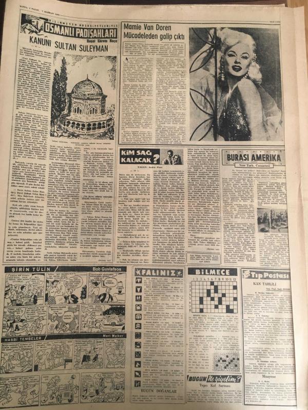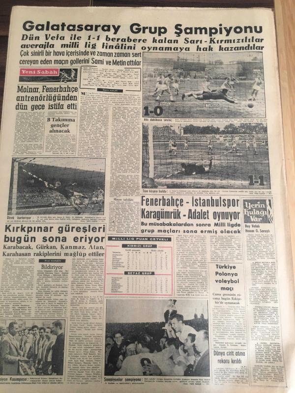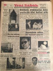 YENİ SABAH GAZETESİ 7 HAZİRAN 1959-Istanbul’lunun kira derdi-Menderes Atlantik Kongresine Bir Mesaj Gönderdi--Şiddetli yağmurlar bazı yerlerde afet halini aldı ---Bazı ihraç mallarına verilen prim artacak --Başvekalete mühim bir toplantı yapıldı --Alman emvalinin iadesi büyük memnuniyet yarattı ---Güney Amerika da büyük karışıklıklar oluyor ---Başvekili tedavi eden doktor ve eşi geliyor ---Ziya Paşanın Rüyası :Siyavuşgil --Et meselesinin halli için narhın kalkınması isteniyor ---Cenevre Konferansı Son Safhasına Geldi ---Arnavutluk ve Bulgaristan da Rusya roket üsleri tesis edecek ---Dün bir mensucat fabrikası daha 80 işçisine yol verdi --Bir katil 6 yıl hapis yatacak --Amerika da staj gören altı polisimiz taltif edildi ---Mamie Van Doren Mücadeleden Galip Çıktı ---Galatasaray Grup Şampiyonu --Molnar ,Fenerbahçe antrenörlüğünden dün gece istifa etti --Fenerbahçe -İstanbul Spor Karagümrük -Adalet oynuyor ---Kırkpınar güreşleri bugün sona eriyor -- adlı eser, Kitap > Süreli Yayınlar > Gazeteler > Türkiye > Genel > Günlük kategorisinde İkinci El olarak satıştadır.