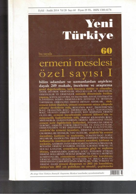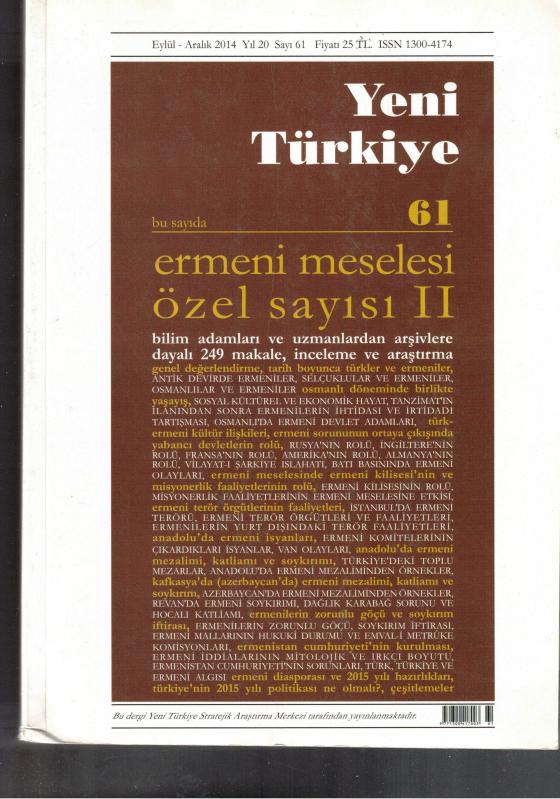 YENİ TÜRKİYE : ERMENİ MESELESİ ÖZEL SAYISI 5 CİLT TAKIM - SAYILAR: 60-61-62-63-64 adlı eser, Kitap > Süreli Yayınlar > Dergiler > Siyaset kategorisinde İkinci El olarak satıştadır.