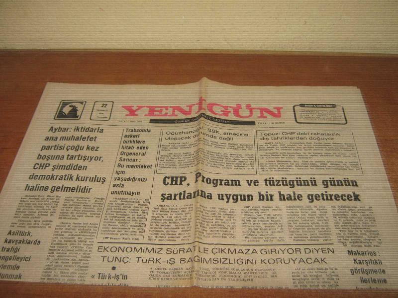 YENİGÜN GAZETESİ 22 TEMMUZ 1976 '' CHP, PROĞRAM VE TÜZÜĞÜNÜ GÜNÜN ŞARTLARINA UYGUN BİR HALE GETİRECEK '' 6 SAYFA DE : DKPO