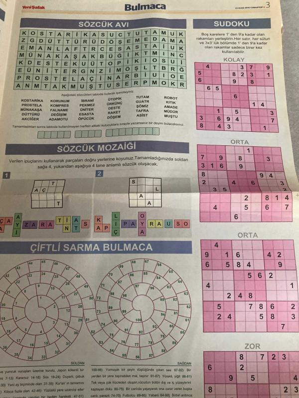 YENİŞAFAK BULMACA GAZETESİ DOĞUM GÜNÜ HEDİYESİ - 23 OCAK 2016 -Çengel bulmaca-sayı bulmaca-kelime bulmaca-harfli mantık oyunu-rakamlı mantık oyunu-mozaik bulmaca-artan sözcük bulmacası-Çengel bulmaca-sudoku-beşli sudoku bulmaca-zincir bulmaca-kelime birleştirme oyunu-kare bulmaca-Mazhar alanson-Hülya avşar- adlı eser, Kitap > Süreli Yayınlar > Gazeteler > Türkiye > Genel > Günlük kategorisinde İkinci El olarak satıştadır.