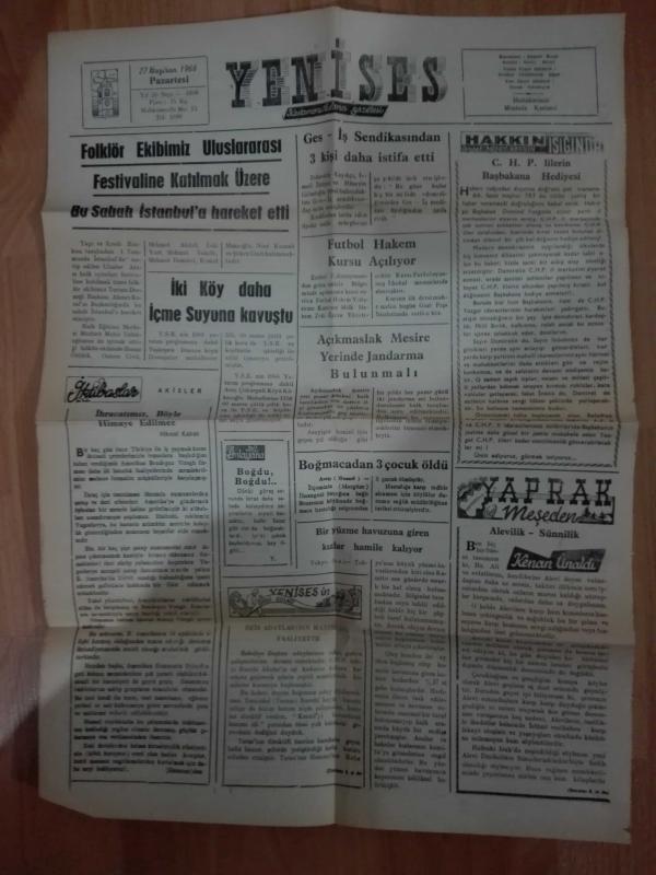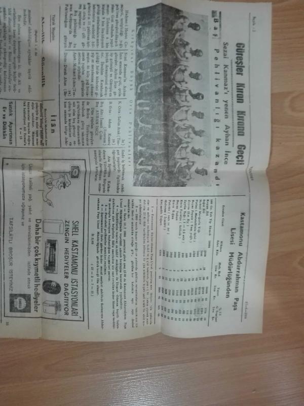 YENİSES Kastamonuluların Gazetesi 27 HAZİRAN 1966 Pazartesi ( AYHAN İNCE Başpehlivan / Shell Kastamonu / Folklor Ekibimiz ) adlı eser, Kitap > Süreli Yayınlar > Gazeteler > Türkiye > Mahalli > Günlük kategorisinde İkinci El olarak satıştadır.