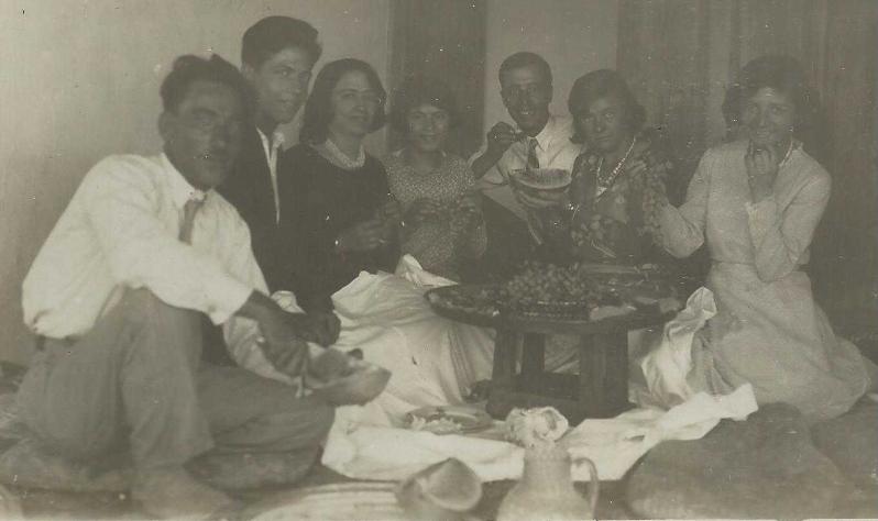 ** YER SOFRASINDA MEYVELERİNİ YİYEN AİLE FOTOĞRAFI ** 14 x 9 cm.ebadında,arkası yazısız,gayet iyi kondüsyonda orijinal fotoğraf...