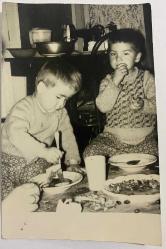 YER SOFRASINDA YEMEK YİYEN 2 ERKEK KARDEŞ FOTOĞRAFI,- ORİJİNAL SİYAH & BEYAZ, 14X 9cm EBADINDA - 1940'LAR, 1950'LER, 1960'LAR ve 1970'LER TÜRKİYE'SİNDEN NOSTALJİK DOĞUM GÜNÜ HEDİYESİ başlıklı ürün, Efemera, Müzik, Sinema > Fotoğraflar > Aile kategorisi altında İkinci El olarak satılmaktadır.