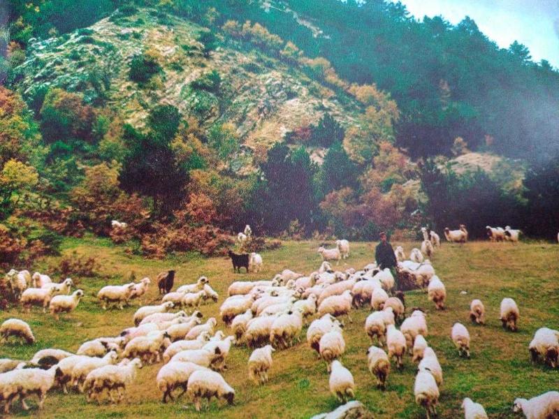 YEŞİL ÇİMENLER ÜSTÜNDE OTLAYAN KOYUNLAR VE ÇOBAN KARTPOSTALI,İÇ KISMINA YAZILMIŞ,RENKLİ, 15 X 19 CM EBADINDA