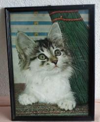 YEŞİL GÖZLÜ KEDİ RESİMLİ AHŞAP ÇERÇEVE 34X25 CM