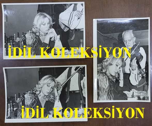 YEŞİLÇAM OYUNCUSU AYNUR AYDAN'IN ORİJİNAL 3'LÜ FOTOĞRAF SETİ - 18 x 12 cm EBADINDA - AYNUR AYDAN, BİR MEKANDA KEMANCI EŞLİĞİNDE İÇKİ İÇİP DÜŞÜNÜRKEN ÇEKİLMİŞ 3 FARKLI KARE. KASIM 1979, en son 3 ay önce güncellenmiştir.