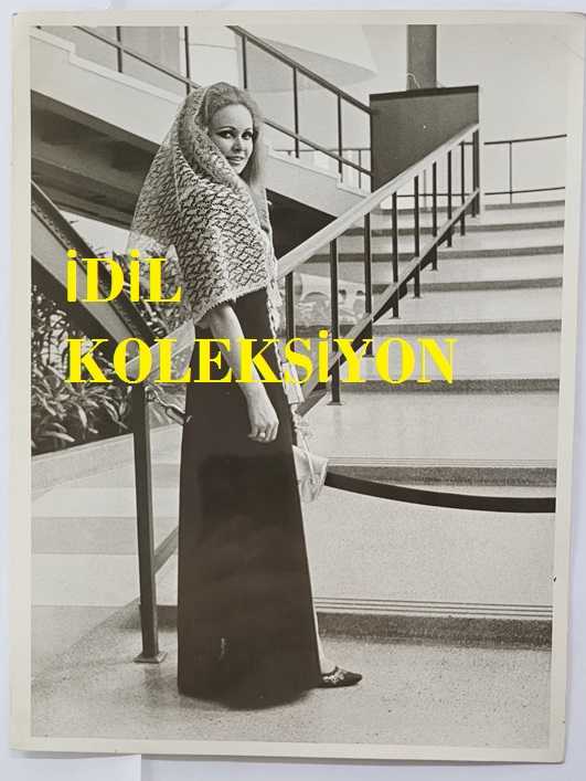 YEŞİLÇAM OYUNCUSU ve 1969 TÜRKİYE GÜZELİ ZUHAL AKTAN'IN ORİJİNAL BÜYÜK BOY FOTOĞRAFI - 24 x 18 cm EBADINDA - ZUHAL AKTAN, SİYAH ŞIK ELBİSESİYLE MERDİVEN BASAMAKLARINDA POZ VERİRKEN ÇEKİLMİŞ BİR KARE, 14 gün önce satışa sunulmuştur.