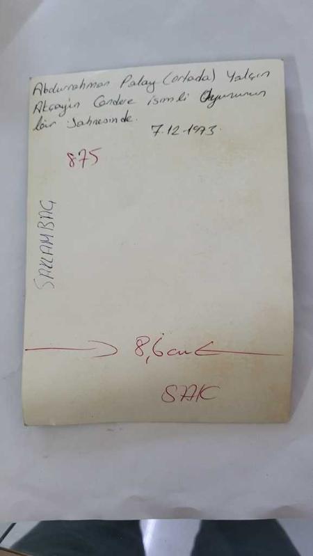 YEŞİLÇAM'IN EFSANE DUBLAJ SANATÇISI ABDURRAHMAN PALAY'IN ORİJİNAL FOTOĞRAFI - 18 x 12 cm EBADINDA - ABDURRAHMAN PALAY, YALÇIN AKÇAY'IN ''CENDERE'' İSİMLİ OYUNUNDA SAHNEDEYKEN ÇEKİLMİŞ BİR KARE. 7 ARALIK 1973, en son 3 ay önce güncellenmiştir.