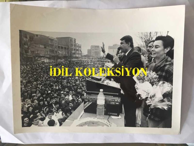 YEŞİLÇAM'IN YILDIZI FATMA GİRİK'İN ORİJİNAL BÜYÜK BOY FOTOĞRAFI - 1989 SEÇİMLERİNDE SOSYAL DEMOKRAT HALKÇI PARTİ SHP'DEN ŞİŞLİ BELEDİYE BAŞKANI SEÇİLEN FATMA GİRİK'İN BAŞKANLIK SÜRECİNDE ÇEKİLMİŞ BİR FOTOĞRAFI, DENİZ BAYKAL MİTİNGDE HALKA SESLENİRKEN FATMA GİRİK'LE BİRLİKTE - 24 x 18 cm EBADINDA, en son 1 yıl önce güncellenmiştir.