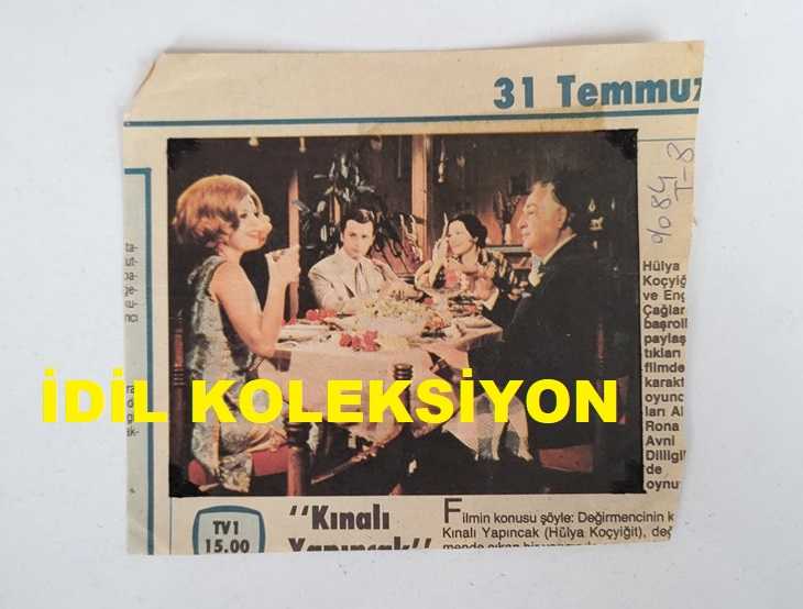 YEŞİLÇAM'IN YILDIZI HÜLYA KOÇYİĞİT'İN GAZETEDEN KESİLME FOTOĞRAFI - 10 x 8 cm EBADINDA - HÜLYA KOÇYİĞİT ''KINALI YAPINCAK'' FİLMİ, bir ay önce satışa sunulmuştur.