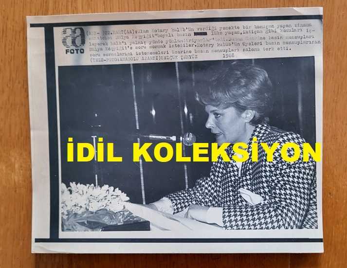 YEŞİLÇAM'IN YILDIZI HÜLYA KOÇYİĞİT'İN ORİJİNAL AJANS-BASIN FOTOĞRAFI (KAĞIT BASKI, HABER METİNLİ) - 21 x 18 cm EBADINDA - HÜLYA KOÇYİĞİT, ULUS HOTARY KULÜBÜNÜN VERDİĞİ YEMEKTE KONUŞMA YAPARKEN, 1988, 15 saat önce satışa sunulmuştur.