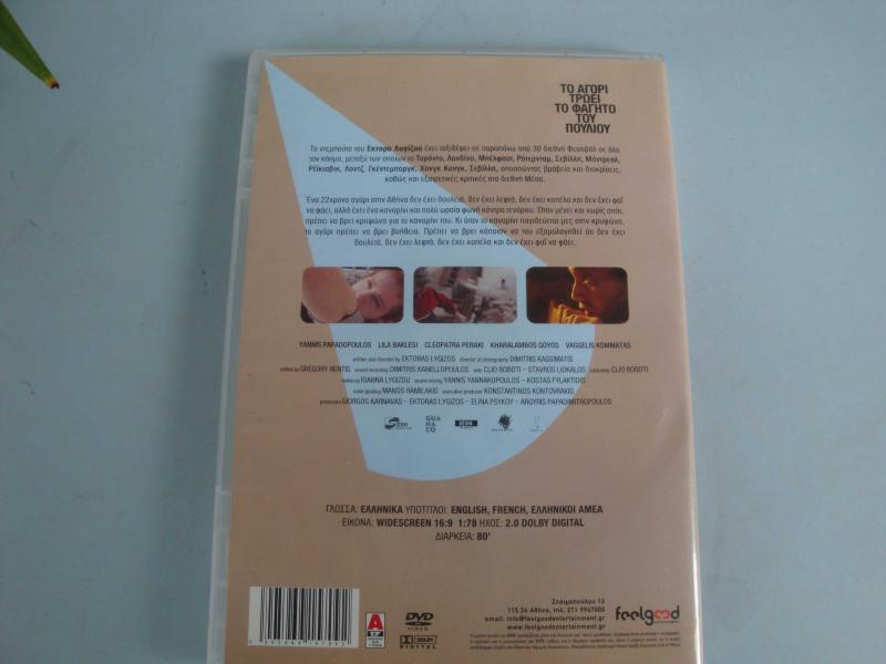 YIANNIS PAPADOPULOS - LILA BAKLESI " To Agori Troei To Fagito Tou Pouliou ( Kuş Yemi Yiyen Çocuk ) " DVD 80 Dakika ( PAL / 2. BÖLGE DVD / İngilizce - Fransızca Altyazı ) FEELGOOD " 2. El ,, Disk SIFIR AYARINDA .." KONUSU Dardenne Kardeşlerin Oğuluna benzeyen bir görsel estetiği, Yeni Yunan sinemasının yabancılaştırıcı aygıtlarıyla yoğuran, Birdy ile akraba bir eser. Kuş Yemi Yiyen Oğlan, yakın plan patlamasının arasından kanarya yemi yiyerek yaşayan 22 yaşındaki Yorgosun açlık, yuva bulma sorunu ve iletişimsizlikle boğuşmasını ele alıyor. Karakterine el kamerasıyla, sessizlikle ve garip hareketlerle varoluşsal çözümler arıyor.