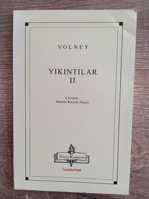 YIKINTILAR II, Volney tarafından kaleme alınmıştır. Kitap 1999 yılında Cumhuriyet Gazetesi tarafından [İstanbul] yayınlanmıştır. Bu baskının çevirisi Samim Kazım Akses tarafından yapılmıştır. 112 sayfadır. YIKINTILAR II adlı eser Türkçe dilindedir.