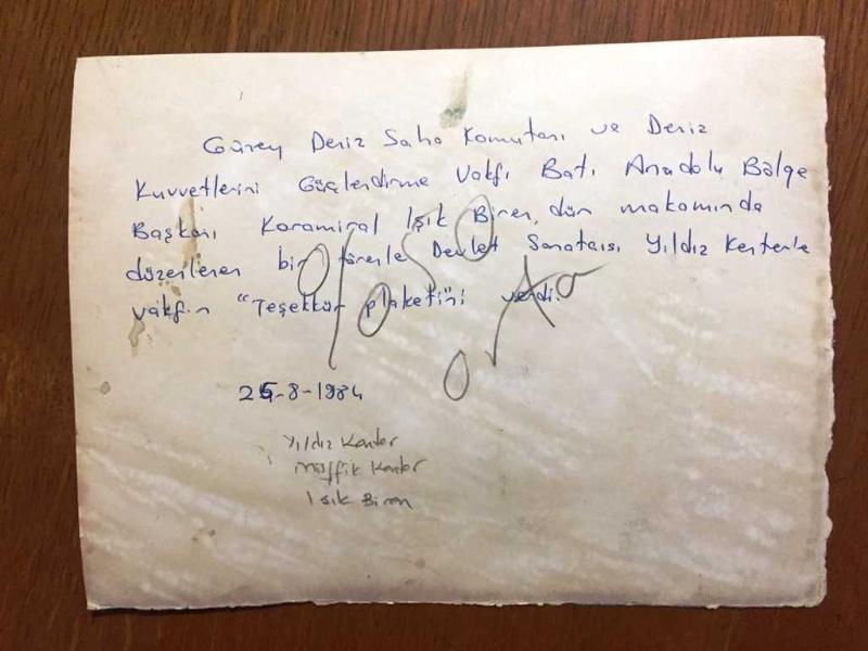 YILDIZ KENTER'İN ORİJİNAL BÜYÜK BOY FOTOĞRAFI - 20 x 15 cm EBADINDA - SİYAH & BEYAZ - GÜNEY DENİZ SAHA KOMUTANI ve DENİZ KUVVETLERİNİ GÜÇLENDİRME VAKFI BATI ANADOLU BÖLGE BAŞKANI KORAMİRAL IŞIK BİREN MAKAMINDA DÜZENLENEN BİR TÖRENLE DEVLET SANATÇISI YILDIZ KENTER'E VAKFIN TEŞEKKÜR PLAKETİNİ VERİRKEN ÇEKİLMİŞ BİR KARE, KONUKLAR ARASINDA MÜŞFİK KENTER - 25 TEMMUZ 1984, en son 1 yıl önce güncellenmiştir.