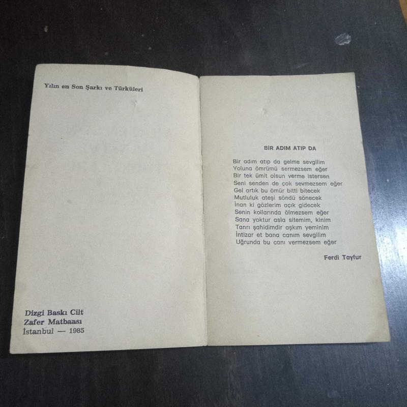 Eser Ziver Aktürk editörlüğünde hazırlanmıştır. Kitap 1985 yılında Dizgi baskı cilt tarafından [Zafer maatbası] yayınlanmıştır. YILIN EN SON ŞARKI VE TÜRKÜLERİ (1985) adlı eser Türkçe dilindedir.