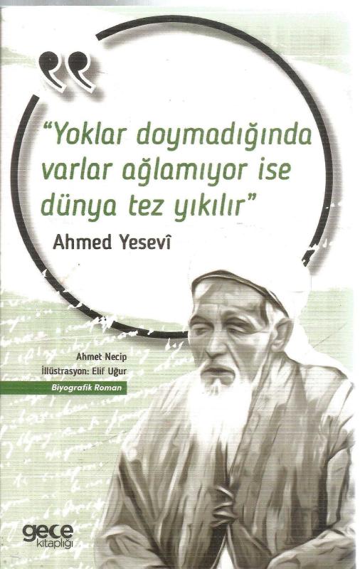 YOKLAR DOYMADIĞINDA VARLAR AĞLAMIYOR İSE DÜNYA TEZ YIKILIR - AHMED YESEVİ (BİYOĞRAFİK ROMAN), AHMET NECİP tarafından kaleme alınmıştır. Eser İLLÜSTRASYON: SİMGE ÜNGÖR editörlüğünde hazırlanmıştır. Kitap 2020 yılında GECE KİTAPLIĞI tarafından [ANKARA] yayınlanmıştır. 82 sayfadır. YOKLAR DOYMADIĞINDA VARLAR AĞLAMIYOR İSE DÜNYA TEZ YIKILIR - AHMED YESEVİ (BİYOĞRAFİK ROMAN) adlı eser Türkçe dilindedir.