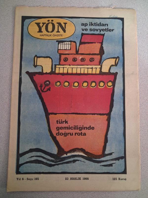 Kitap 1966 yılında YÖN tarafından [İSTANBUL] yayınlanmıştır. 16 sayfadır. YÖN Haftalık Gazete Yıl:5, Sayı:195, 23 ARALIK 1966 (AP İKTİDARI VE SOVYETLER / TÜRK GEMİCİLİĞİNDE DOĞRU ROTA) adlı eser Türkçe dilindedir.
