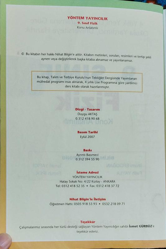 LÜTFEN AÇIKLAMAYI OKUYUN... YÖNTEM YAYINCILIK 9. SINIF FİZİK KONU ANLATIMLI 496 SAYFA 2007 BASKI 6 SAYFADA SORU ÇÖZÜLMÜŞ DİĞER SAYFALAR KULLANILMAMIŞTIR.