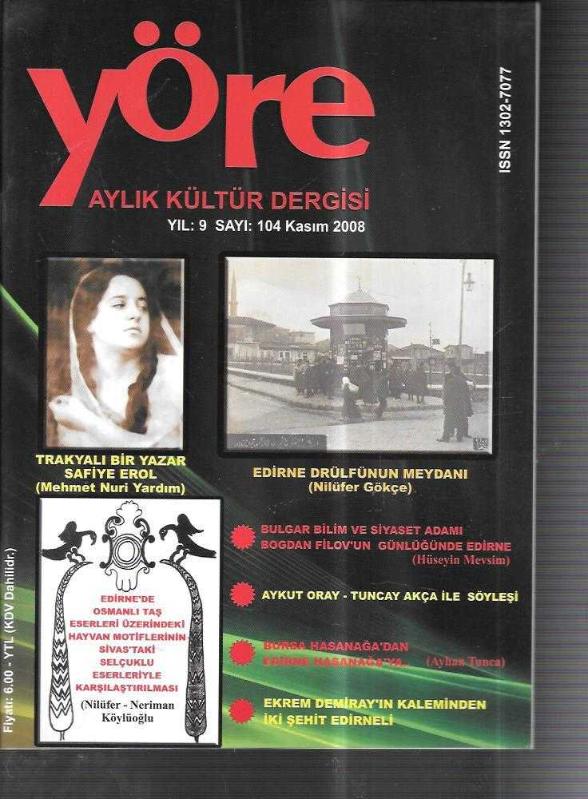 Kitap 2009 yılında Yöre Yay. tarafından [Edirne] yayınlanmıştır. 148 sayfadır. Sayfa bilgisi Kuşe kağıt. olarak belirtilmiştir. YÖRE Aylık Kültür Dergisi sayı: 104 trakyalı bir yazar safiye erol adlı eser Türkçe dilindedir.