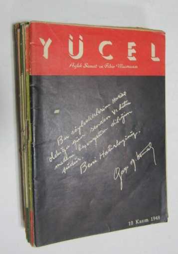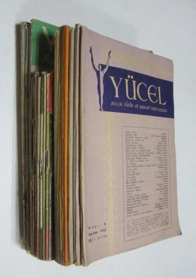 "Özetle, Yücel dergisi, Cemal Süreya'nın da belirttiği gibi 1946'ya kadar genel bir hümanizma düşüncesinin çevresinde ülkücü; 1946 - 1950 yılları arasında Atatürkçülükten verilen ödünlere karşı eleştirici; 1950'den sonraki kısa yayın döneminde ise kötümserdir." Doğan E. (1997), Edebiyatımızda Dergiler, İstanbul, Bağlam Yayıncılık, s. 24 İlk seri: 1938 - 1939 yılları arası, sayılar: 20, 21, 22, 23, 47, 49, 54 20x27 ebadında, İkinci seri: 1947 - 1948 yılları arası, sayılar: 125, 126, 127, 135, 136, 138, 139, 140, 141-142, 143-144-145, 14x20 ebadında, Üçüncü seri: 1950 yılı, sayılar: 1, 2, 3, 4, 5, 6, 7, 8, 17x25 ebadında, Orijinal karton kapaklarında. (Bazı sayılarda yaşının verdiği yıpranma belirtileri.) LOT HALİNDE SATILIR, TEK TEK SATILMAZ. Tarih: 1936-1950 Sayfa Bilgisi: