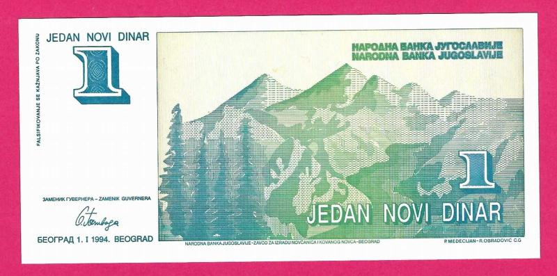 YUGOSLAVIA 1 Novi Dinar 1994 p145 UNC ÇİL, bir ay önce satışa sunulmuştur.