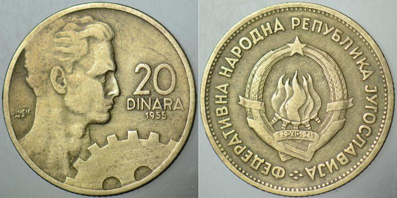 YUGOSLAVYA 20 DİNAR 1955. İŞÇİ VE ÇARK TEMALI. TİTO DÖNEMİ., 6 gün önce satışa sunulmuştur.