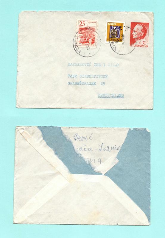 Postadan geçmiş bu zarfın üzerinden uzun yıllar geçmiş, resimde görüldüğü haliyledir. Kusurları normal kabul edilebilir. Bu zarf Yugoslavya'da 1990'larda başlayan ve tarihin en büyükleri arasında yer alan hiperenflasyon döneminin başlarına ait mükemmel bir örnektir. Üzerindeki sürşarjlı (değeri değiştirilmiş) pul, bu zarfın en dikkat çekici ve değerli özelliğidir. Bu tür zarflar, ekonomik ve posta tarihi açısından önemli birer belge niteliğindedir. Çıkış Yeri: LOZNICA, Yugoslavya (bugünkü Sırbistan). Varış Yeri: Sindelfingen, Almanyadır. Üzerindeki pul kombinasyonu, enflasyonun posta ücretlerine etkisini çarpıcı bir şekilde göstermektedir. (Sürşarjlı Pul): Ortadaki pul, aslında 1986 basımı 0.30 Dinar değerindeki "Partizan Matbaası" puludur. Artan enflasyon nedeniyle değeri yetersiz kalınca, 1990 yılında üzerine "10" basılarak değeri 10 Dinara yükseltilmiştir. Bu işleme sürşarj denir ve bu pul, zarfın yıldız parçasıdır. Sol başta yer alan pul, 1981 "Endüstri" serisinden "Svetozarevo Tekstil Fabrikası" puludur. Sağdaki Tito pulu, 1985 basımıdır. 1990'daki enflasyonist ortamda değeri neredeyse sıfırlanmış olmasına rağmen, muhtemelen küsuratı tamamlamak veya postanede elde kalan pulları eritmek için kullanılmıştır.