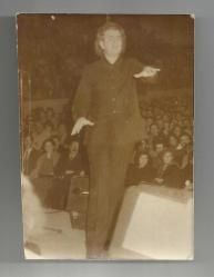** YUNAN SANATÇI VE MÜZİK ADAMI MİKİS THEODORAKİS ORİJİNAL FOTOĞRAF ** 13 x 9.2 cm.ebadında,arkasında adı yazılı olan, gayet iyi kondüsyonda,dönem orijinal fotoğraftır.. Yer ve zaman bilgisi mevcut değil ancak Türkiye'de bir konserde çekilmiş olabilir..