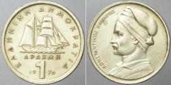 YUNANİSTAN 1 DRAHMİ 1976. YELKENLİ ve DENİZCİLİK TEMALI.