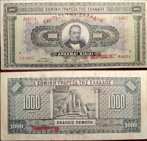YUNANİSTAN 1000 DRAHMİ 1926 TEMİZ+ KONDÜSYONDADIR, RESİMDEKİ ÜRÜN GÖNDERİLECEKTİR.