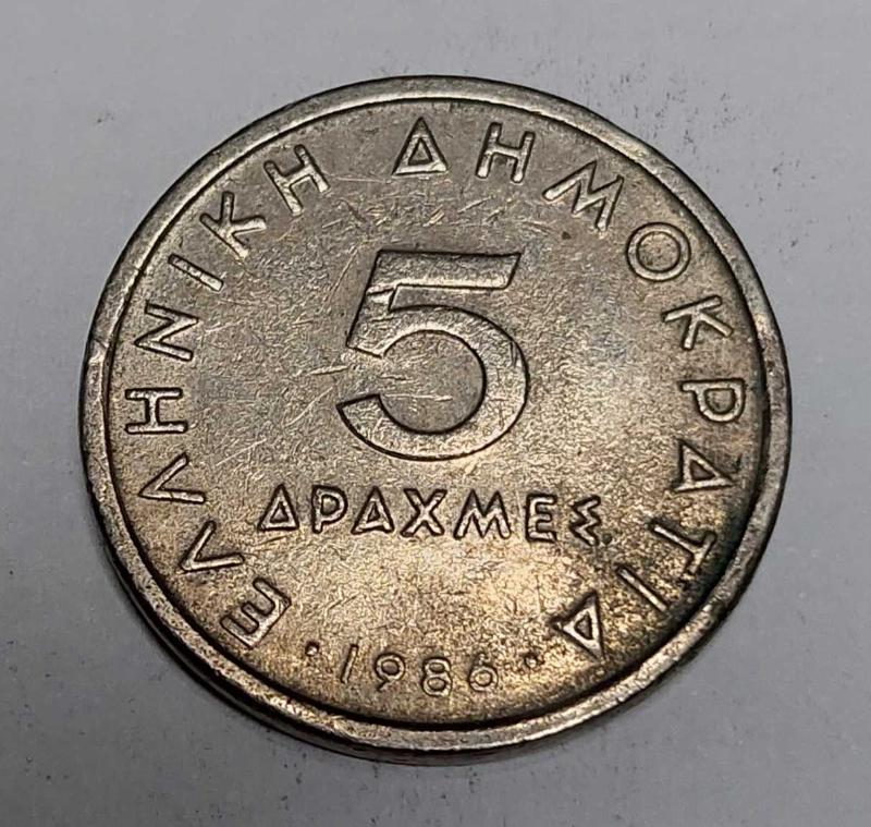 YUNANİSTAN 1986 5 DRAHMİ, dün satışa sunulmuştur.
