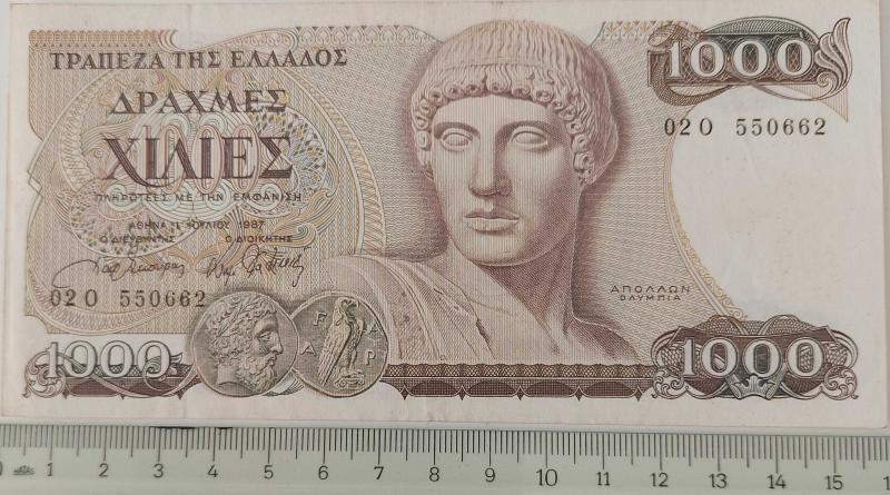 YUNANİSTAN 1987 BİN 1000 DRAHMİ ORİJİNAL KAĞIT PARASIDIR. KONDİSYONU ÇİLALTI OLARAK DEĞERLENDİRİLMEKTEDİR. ÇOK NADİR PARALARDANDIR. RESMİNİ GÖRDÜĞÜNÜZ ÜRÜN AYNEN GÖNDERİLİR. TÜM ÜRÜNLERİMİZE BAKMANIZ MENFAATİNİZEDİR. SAYGILARIMIZLA.
