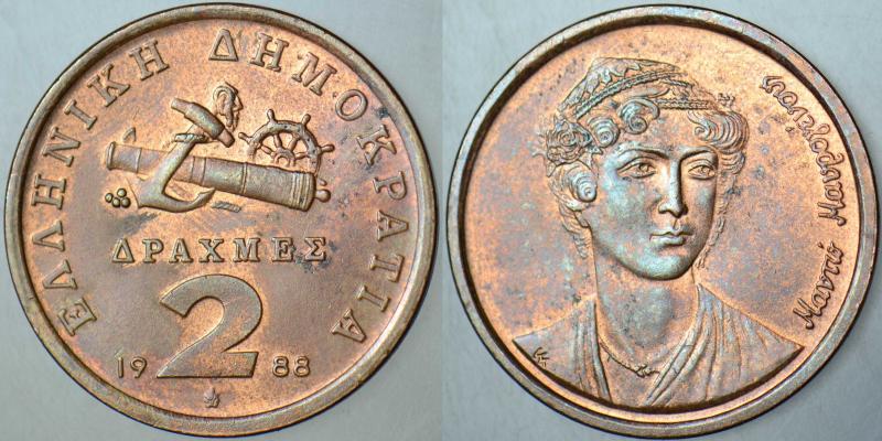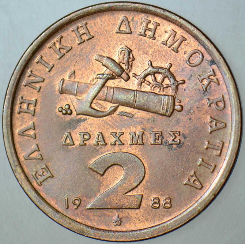 YUNANİSTAN 2 DRAHMİ 1988 BU TİPİN BASILDIĞI İLK YIL. ÇİLALTI, 3 ay önce satışa sunulmuştur.