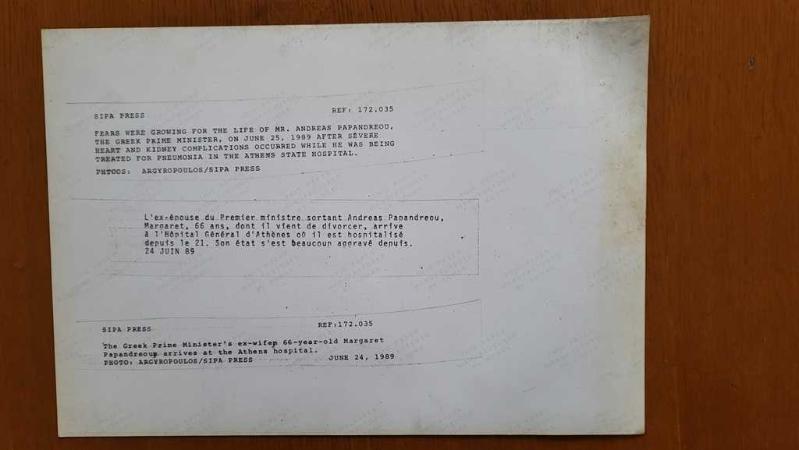 YUNANİSTAN ESKİ BAŞBAKANI ANDREA PAPANDREU'NUN EŞİ MARGARITA'NIN ORİJİNAL BÜYÜK BOY FOTOĞRAFI (ΦΩΤΟΓΡΑΦΙΑ ΤΟΥ ΠΡΩΗΝ ΠΡΩΘΥΠΟΥΡΓΟΥ ΤΗΣ ΕΛΛΑΔΑΣ, ΑΝΔΡΕΑ ΠΑΠΑΝΔΡΕΟΥ) - 30 x 20 cm EBADINDA - 23 HAZİRAN 1989'DA, YUNANİSTAN BAŞBAKANI ANDREAS PAPANDREOU, ATİNA DEVLET HASTANESİNDE ZATÜRRE TEDAVİSİ GÖRÜRKEN CİDDİ KALP VE BÖBREK SORUNLARI YAŞADIKTAN SONRA HAYATI İÇİN ENDİŞELER ARTIYORDU. YUNANİSTAN BAŞBAKANI'NIN 66 YAŞINDAKİ ESKİ EŞİ MARGARET PAPANDREOU DA ATİNA HASTANESİNE GELDİ - FEARS WERE GROWING FOR THE LIFE OF MR. ANDREAS PAPANDREOU, THE GREEK MINISTER, ON JUNE 23, 1989 AFTER SEVERE HEART AND KIDNEY COMPLICATIONS OCCURRED WHILE HE WAS BEING TREATED FOR PNEUMONIA IN THE ATHENS STATE HOSPITAL. THE GREEK PRIME MINISTER'S EX-WIFE 66-YEAR-OLD MARGARET PAPANDREOU ARRIVES AT THE ATHENS HOSPITAL. - Οι φόβοι για τη ζωή του κ. Ανδρέα Παπανδρέου, του Έλληνα Υπουργού, αυξάνονταν στις 23 Ιουνίου 1989, Η πρώην σύζυγος του Έλληνα πρωθυπουργού, 66χρονη Μαργαρίτα Παπανδρέου, φτάνει στο νοσοκομείο της Αθήνας., en son 2 ay önce güncellenmiştir.