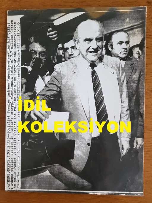 YUNANİSTAN ESKİ BAŞBAKANI ANDREA PAPANDREU'NUN ORİJİNAL AJANS-BASIN FOTOĞRAFI - 24 x 18,5 cm EBADINDA - ANDREA PAPANDREU SEÇİMDE SANDIĞA OY ZARFINI ATTIĞI SIRADA POZ VERİRKEN ÇEKİLMİŞ BİR KARE başlıklı ürün, Efemera, Müzik, Sinema > Fotoğraflar > Diğer kategorisi altında İkinci El olarak satılmaktadır.