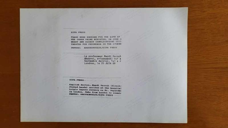 YUNANİSTAN ESKİ BAŞBAKANI ANDREA PAPANDREU'NUN ORİJİNAL BÜYÜK BOY FOTOĞRAFI (ΦΩΤΟΓΡΑΦΙΑ ΤΟΥ ΠΡΩΗΝ ΠΡΩΘΥΠΟΥΡΓΟΥ ΤΗΣ ΕΛΛΑΔΑΣ, ΑΝΔΡΕΑ ΠΑΠΑΝΔΡΕΟΥ) - 30 x 20 cm EBADINDA - 23 HAZİRAN 1989'DA, YUNANİSTAN DEVLET BAKANI ANDREAS PAPANDREOU, ATİNA DEVLET HASTANESİNDE ZATÜRRE TEDAVİSİ GÖRÜRKEN CİDDİ KALP VE BÖBREK SORUNLARI YAŞADIKTAN SONRA HAYATI İÇİN ENDİŞELER ARTIYORDU. İNGİLİZ DOKTOR MAGDİ YACOUB, PAPANDREOU'YA ÜÇLÜ BYPASS AMELİYATI YAPMAK ÜZERE LONDRA'DAN HASTANEYE GELDİ. - FEARS WERE GROWING FOR THE LIFE OF MR. ANDREAS PAPANDREOU, THE GREEK MINISTER, ON JUNE 23, 1989 AFTER SEVERE HEART AND KIDNEY COMPLICATIONS OCCURRED WHILE HE WAS BEING TREATED FOR PNEUMONIA IN THE ATHENS STATE HOSPITAL. ENGLISH DOCTOR, MAGDI YACOUB ARRIVES AT THE HOSPITAL TRIPLE BYPASS SURGERY ON MR. PAPANDREOU FROM LONDON (Ο Άγγλος γιατρός, Μαγκντί Γιακούμπ, φτάνει στο νοσοκομείο από το Λονδίνο για την τριπλή επέμβαση παράκαμψης του κ. Παπανδρέου.), en son 2 ay önce güncellenmiştir.