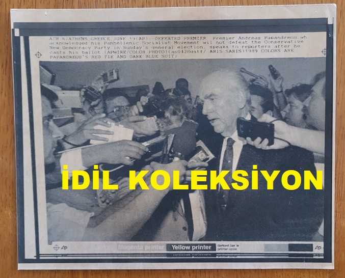 YUNANİSTAN ESKİ BAŞBAKANI ANDREAS PAPANDREU'NUN AJANS-BASIN FOTOĞRAFI (KAĞIT BASKI) (Πρωτότυπη φωτογραφία ειδησεογραφικού πρακτορείου του πρώην Έλληνα πρωθυπουργού Ανδρέα Παπανδρέου.) - 21 x 16 cm EBADINDA - ANDREAS PAPANDREU BASIN AÇIKLAMASI YAPARKEN ÇEKİLMİŞ BİR KARE, en son bir ay önce güncellenmiştir.