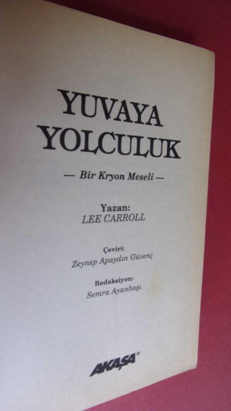YUVAYA YOLCULUK '' Bir Kryon Meseli '', ' LEE CARROLL tarafından kaleme alınmıştır. Kitap 2000 yılında AKAŞA YAYINLARI tarafından [İSTANBUL] yayınlanmıştır. Bu baskının çevirisi Zeynep Apaydın Güvenç tarafından yapılmıştır. 304 sayfadır. YUVAYA YOLCULUK '' Bir Kryon Meseli '' adlı eser Türkçe dilindedir.