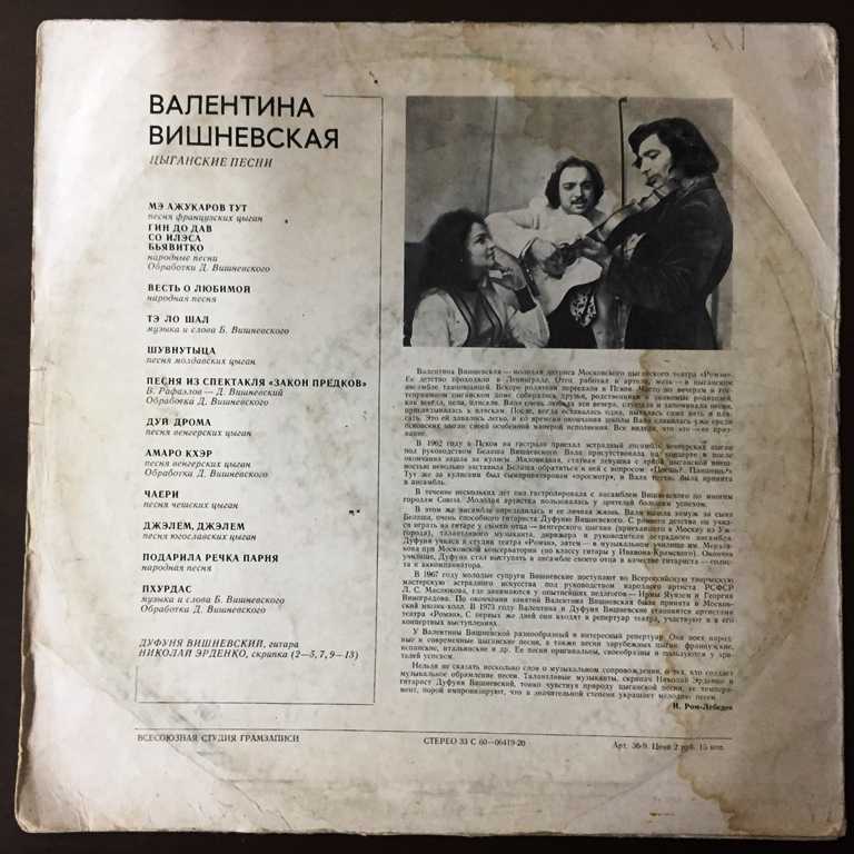 Валентина Вишневская – Цыганские Песни – Yabancı 33'lük Plak - SOVYET RUSYA BASKI - RUSÇA ŞARKILAR, en son bir ay önce güncellenmiştir.