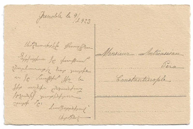 Yabancı kartpostal, arka yüzü Ermenice yazılı, 1923, Pera Constantinople adresli.