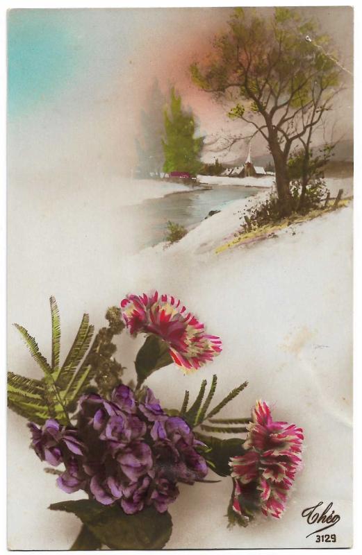 Yabancı Kartpostal: Arka Yüzü Fransızca Yazılı /1925 - Kış ve Çicek Temalı