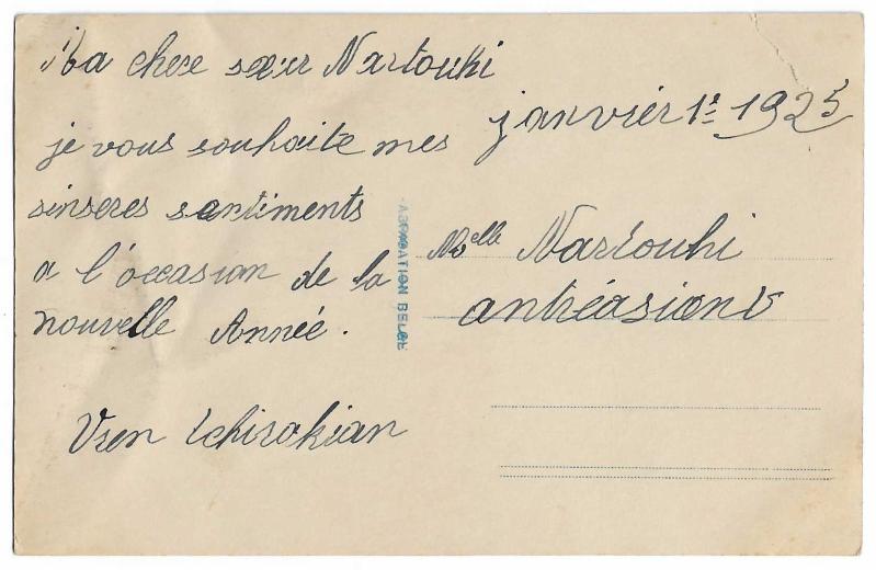 Yabancı kartpostal, arka yüzü Fransızca yazılı, 1925 tarihli, bir kenarı yırtık.