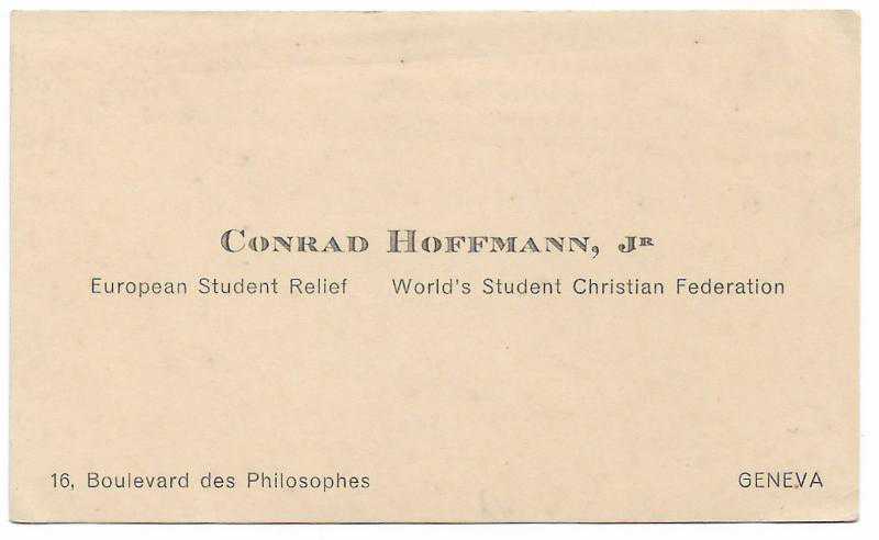 Yabancı Kartvizit: Conrad Hoffmann, JR, Cenevre, Dünya Hristiyan Öğrenciler Federasyonu.