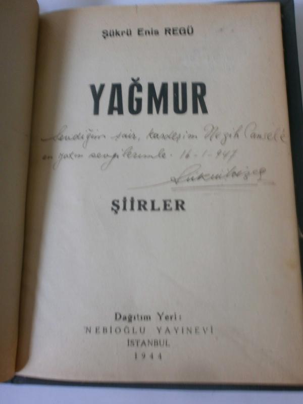 Yağmur, Şükrü Enis Regü tarafından kaleme alınmıştır. Kitap 1944 yılında İktisadi Yürüyüş Matbaası ve Neşriyat Yurdu tarafından [İstanbul] yayınlanmıştır. 46 sayfadır. Yağmur adlı eser Türkçe dilindedir.